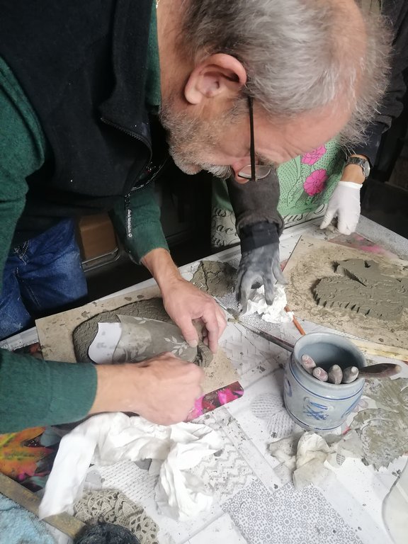 Platten, Schalen, Dekostecker entstanden unter der geduldigen und liebevollen Betreuung von Jeannette. Ihre Begeisterung für dieses Material ist ansteckend. Am ersten Kurstag formten wir unsere Objekte die dann getrocknet wurden. Jeannette nahm unsere Stücke aus der Form und bereitete sie für unseren 2.Kurstag vor. Sie entgratete sie solange die Kanten noch nicht ausgehärtet waren. Am 2. Kurstag bekamen die Kunstwerke noch ihren letzten Schliff, mit Farbe wurde dezent betont und fertig waren tolle Mitbringsel und Dekoartikel für den Garten.
