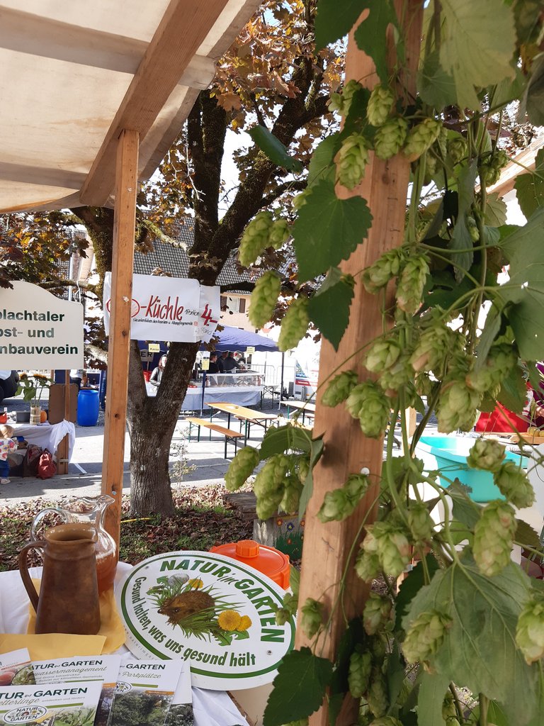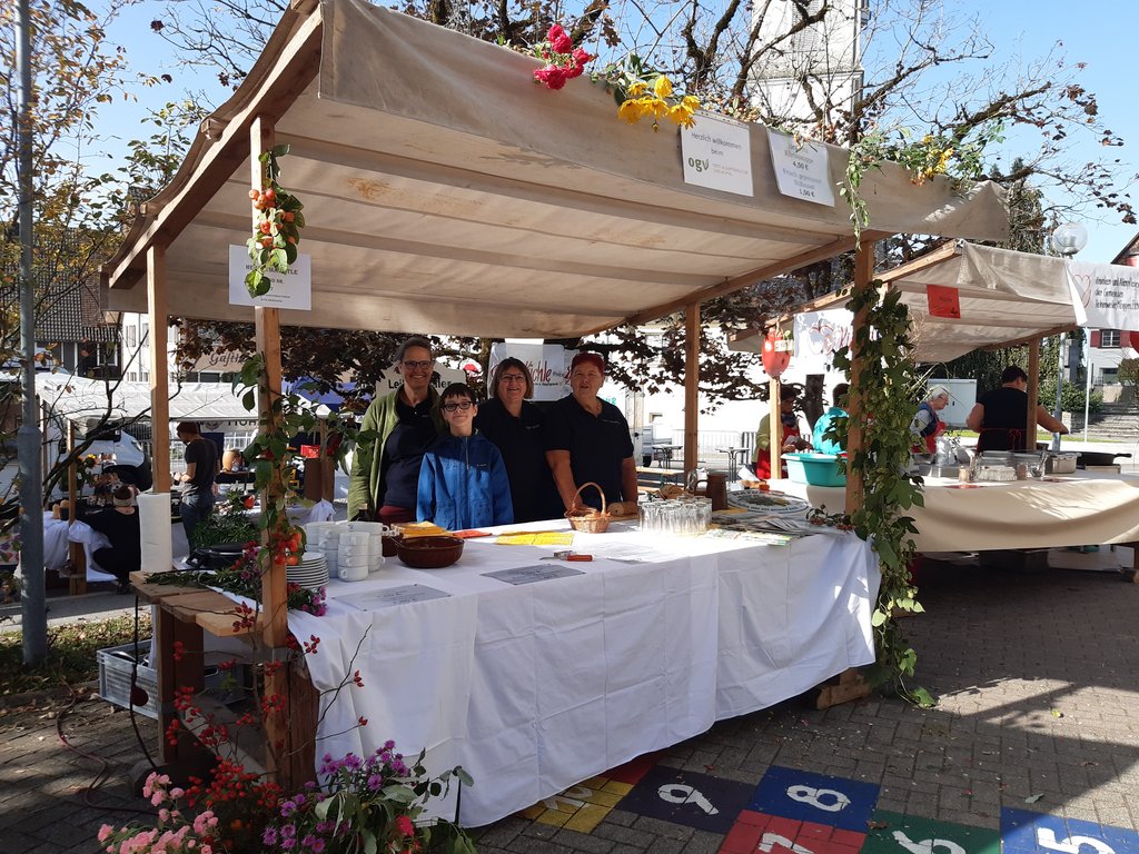 Das Team vom OGV-Leiblachtal Geli, Herbert, Ruth, Timo und Melitta hatten viel Spaß bei dem schönen Sonntagswetter und den wirklich sehr zahlreichen und gutgelaunten Besuchern.
