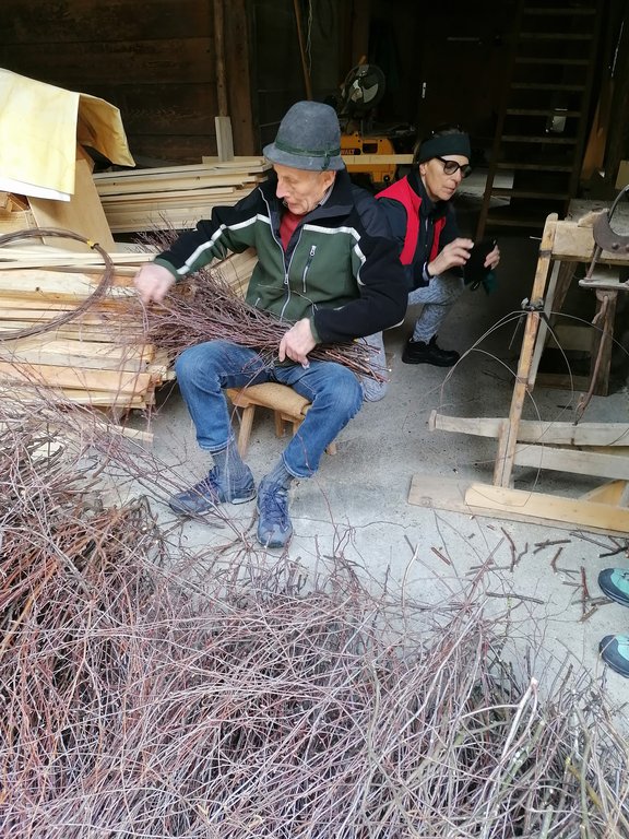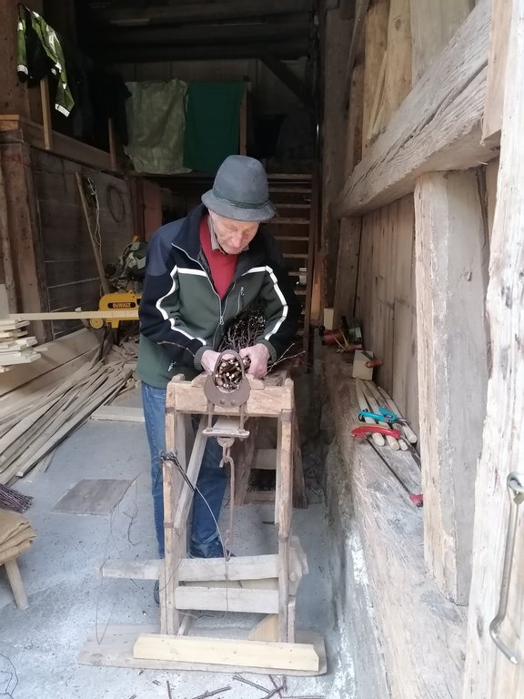 Herr Düringer zeigte uns wissbegierigen Frauen wie man einen Reisigbesen herstellt: