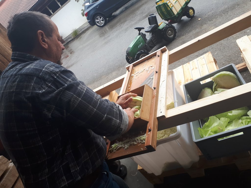 Wegen Corona brachte jeder Kraut selber mit und auch das Einmachbehältnis.
