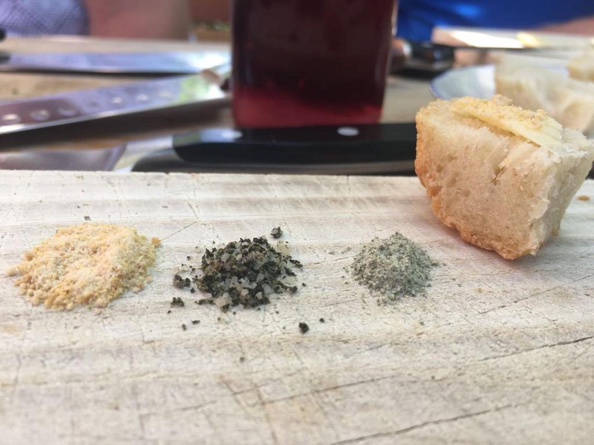Zuerst wurden verschiedene Salze mit selbstgebackenem Brot von Ruth verköstigt. Es wurde über unterschiedliche Möglichkeiten der Kräutersalzherstellung diskutiert.