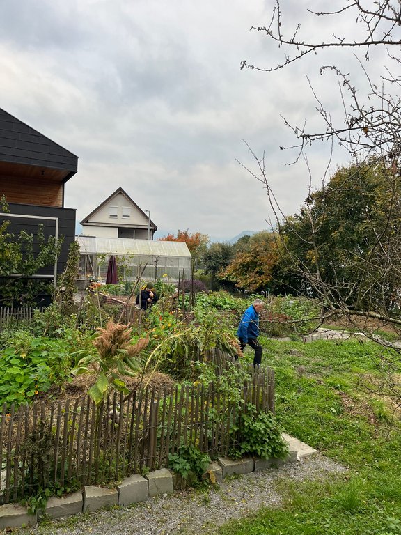 Der Garten wurde nach den Grundsätzen der Permakultur geplant. Nun wachsen hier Gemüse, Kräuter, Obst, Wild- und Zierpflanzen zur Teil-Selbstversorgung. Die Gartenelemente wirken zusammen zu einer einfacheren und nachhaltigeren Bewirtschaftung.
