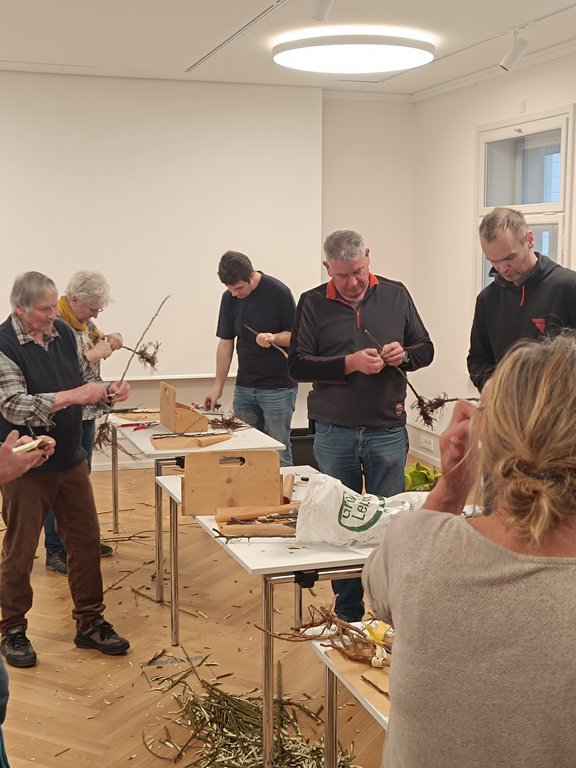 Nach einer kurzen Jause ging es am Nachmittag dann in den praktischen Teil. Zuerst wurden die unterschiedlichen Schnitttechniken an Weidenruten geübt, eine ideale Möglichkeit, um ein Gefühl für die präzisen Schnitte zu bekommen. Anschließend wurde es ernst: Nun durften die Teilnehmer:innen ihr neu erlerntes Wissen direkt an echten Apfelbäumen anwenden und selbst Hand anlegen.