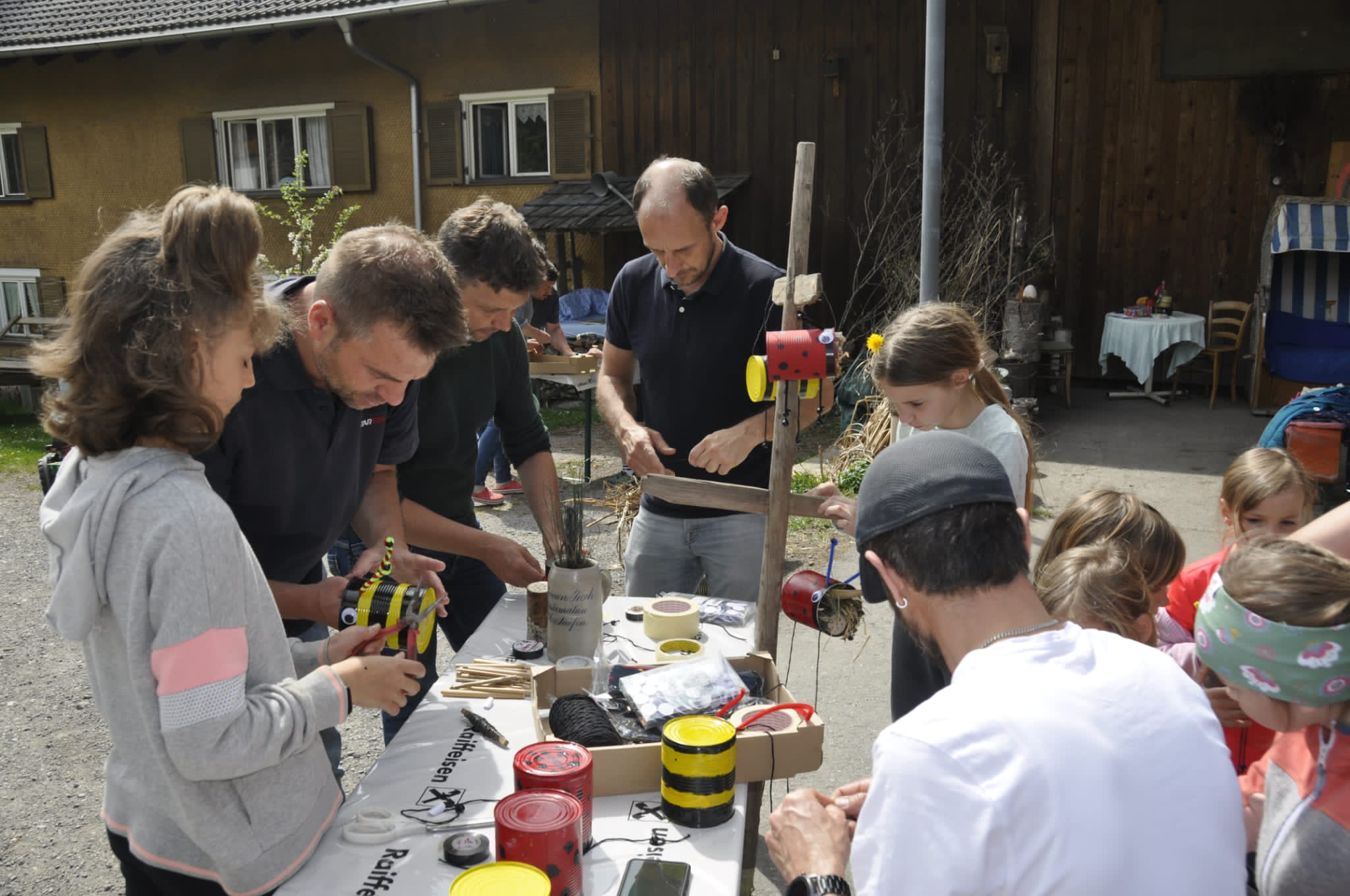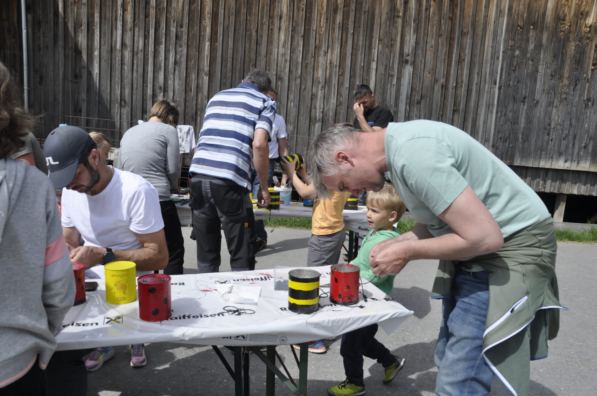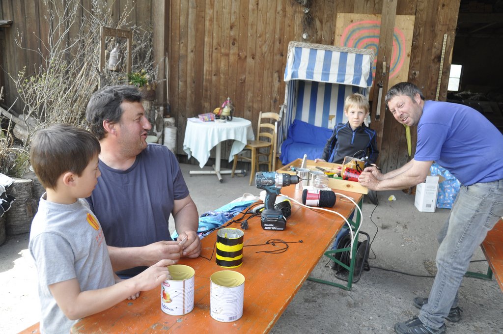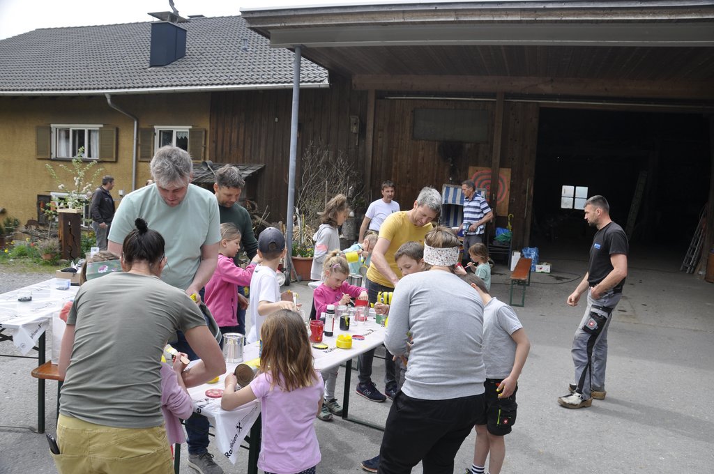 Insgesamt 21 Kinder haben sich mit ihren Papa's bei Regina Hirschbühl eingefunden um alten Lebensmitteldosen neues Leben einzuhauchen.