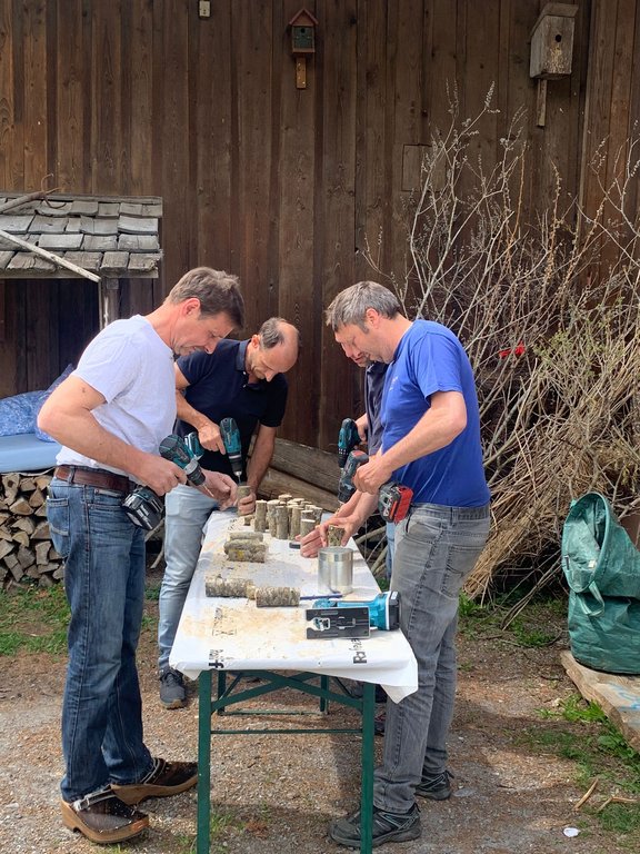 Die Kinder bastelten mit Hilfe der motivierten Papa's Insektenhotels als Muttertagsgeschenk.