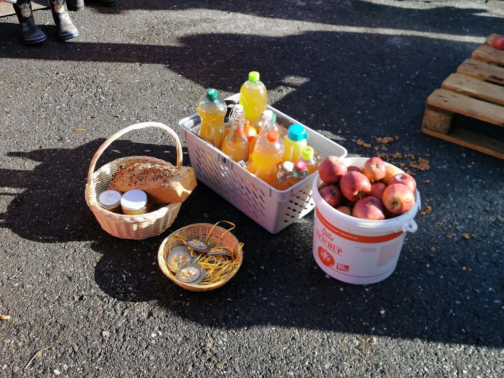 Am 7.10.2019 feierte der OGV Übersaxen mit den Kindergärtlern ihr jährliches Erntedankfest. Dabei durfte das Süßmostpressen bei Günther Breuß natürlich nicht fehlen. Nach der Segnung durch Pfarrer Peter Haas wurden die Kinder von Ingrid, Günther, Ludwig und Aaron mit frisch gepresstem Apfelsaft verwöhnt.