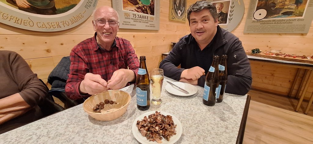 Ca. 50 Vereinsmitglieder sind der Einladung zum Törggelen gefolgt. Im Vereinshaus der Schützengilde Montafon wurden wir mit einer deftigen Wurst-, Speck- und Käseplatte bestens versorgt, Maultaschen mit Parmesan durften dabei nicht fehlen. Zwischendruch geröstete Kastanien, gute Unterhaltung mit interessanten Gesrächen haben den Abend zu einem gemütlichen Treffen gemacht.