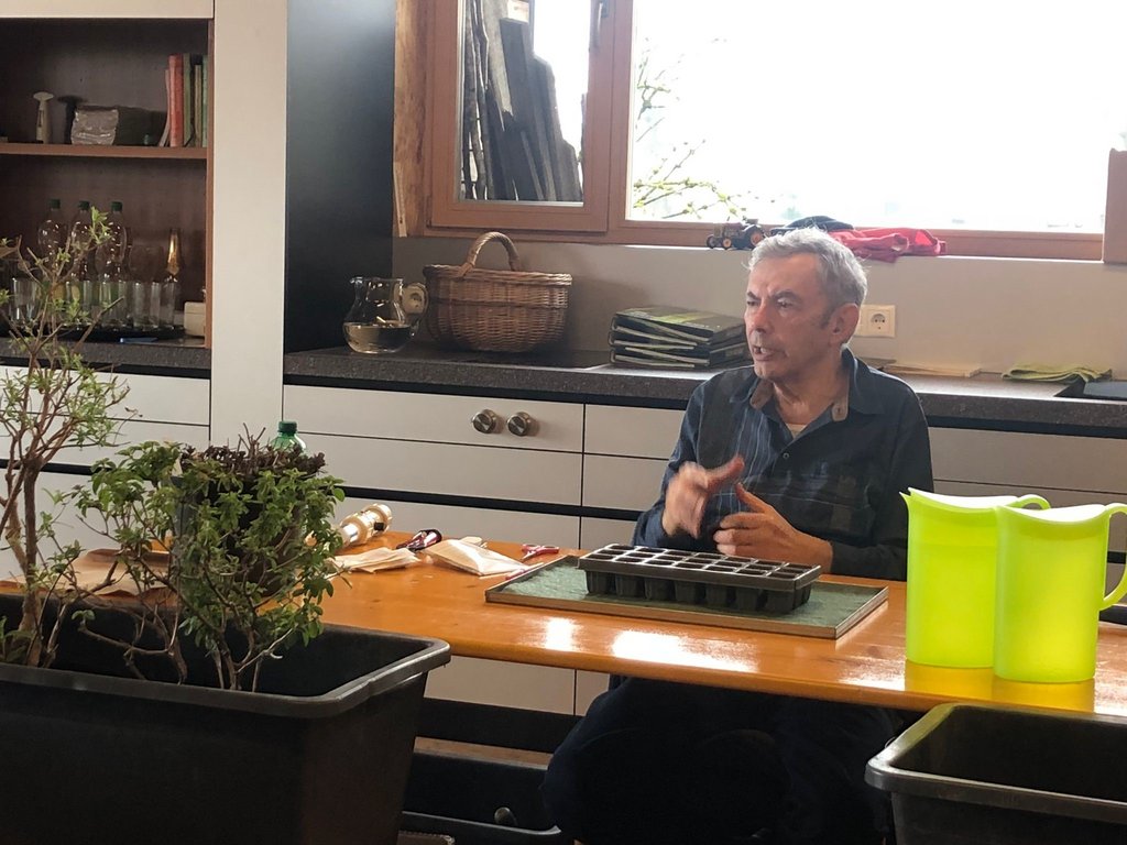 Verschiedene Basilikumarten, Minzen, Tagetes u.v.m wurde besprochen. Zum Schluss übergab uns Elmar Thurnher einen riesigen Schatz an Samen, aus dem wir uns nach Herzenslust bedienen konnten und als Geschenk bekam jeder ein Töpfchen mit winterhartem Erdnuss Rukola.