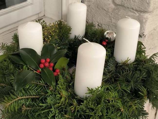 Kursleiterin Marianne Ritter aus Lingenau zeigt, wie sich mit den verschiedensten Materialien schöne Adventskränze binden lassen.