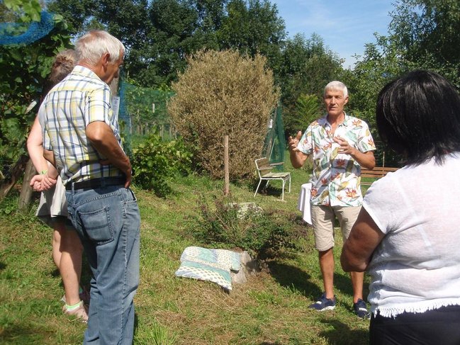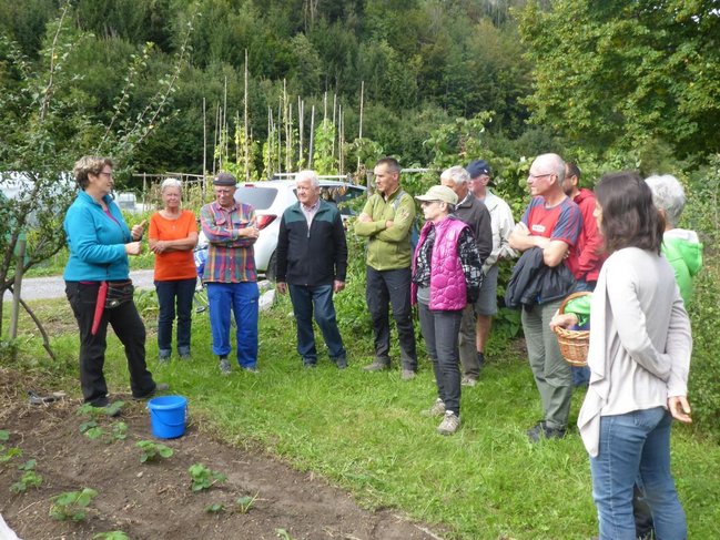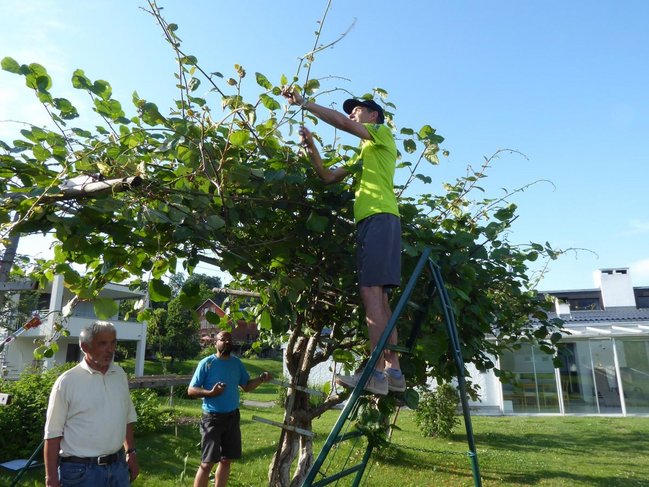 Sechs Teilnehmer trafen sich bei Josef Koch im Unterdorf und bei Willi Huber zu einem Kiwi-Winterschnittkurs.