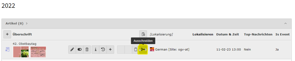 Dazu wird der Betreffende Termin/Bericht mit dem Ausschneiden-Symbol in die Zwischenablage gelegt.