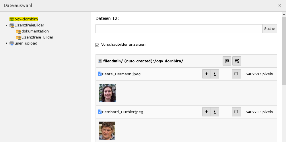 Alle Bilder des Ortsvereins müssen in den Ordner mit dem Namen des Ortsvereins geladen werden.