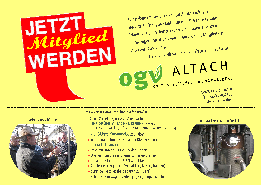 Alle Infos, Details und Termine finden Sie auf der Webseite des OGV Altach unter www.ogv-altach.at